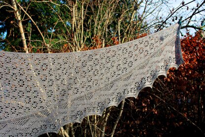 The pattern includes directions for knitting this shawl in one size. (Width at top edge: 190 centimeters, Height/dept: 55 centimeters).