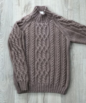A richly textured pattern with vertical braids which frame the Celtic inspired panel. Raglan sleeves give comfort and the cosy turtle neck can also be folded to wrong-side and loosely stitched in place if a crew neck is preferred. All borders are in 2/2 rib. Work bottom up and with full written instructions.