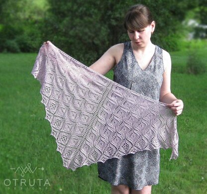 Aloisa shawl is a classic triangle shawl with slightly textured and lace pattern worked in one piece from the center back to the bottom edge.