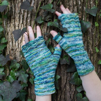 Simplistic to knit, fun to wear. Along the Shores Fingerless Mitts is an enjoyable knit with just a couple of simplistic textures inspired by the ocean. It includes the option to work a herringbone cuff or a ribbed cuff and customization instructions for adjusting the length of your mitts.