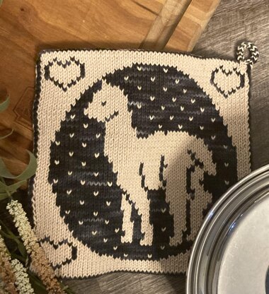 This is the seventh potholder in my Farm Animal Series. It all started when I went to Montana this past summer to work on a ranch and met the most welcoming and hospitable ranch owner, named Wanda. She home-cooked amazing meals for us each night and I had the pleasure of visiting her farmhouse kitchen, which was decorated mostly with roosters. The first potholder I designed was a Rooster with Wanda specifically in mind, as well as all the other moms and grandmas who love making their kitchens feel warm and inviting!