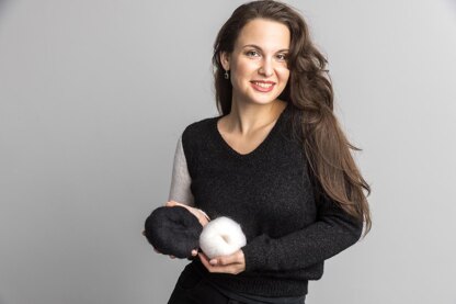 Eye-catcher: sweater in 2 colorsWith this knitting instruction you can knit a two-colored sweater with soft baby alpaca. We knitted this sweater in black and white. The jumper is knitted in stockinette stitch with ribbed cuffs. Suitable for knitters with medium experience. You can also knit this sweater in black and white or in the color of your choice.