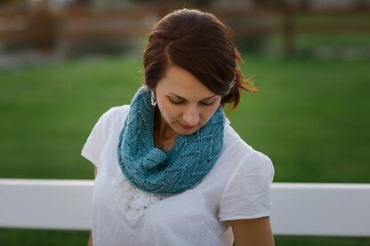 Alpenglow is a long cowl that can be worn open or double-wrapped around the neck. A fun chevron lace pattern makes this cowl modern and stylish. Alpenglow was inspired by the Rocky Mountains that surround my home in Colorado.