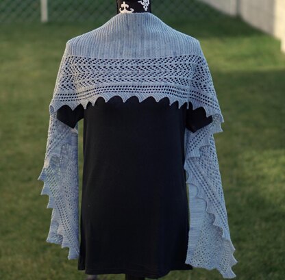 A shallow shawlette/scarf knitted sideways in one piece with written and charted instructions.