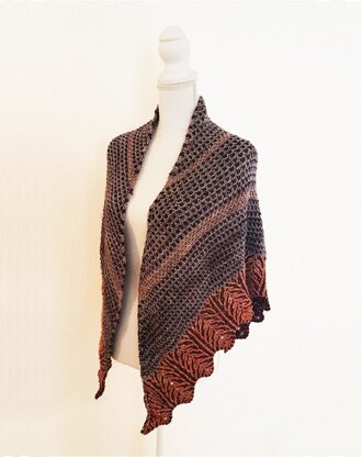 This cozy brioche shawl is one of my absolute favourites. It is beautifully textured with a budding pillar border and it is worked down and out from the center of the top edge. The pattern is mainly written instructions, but some complementary charts are also included.