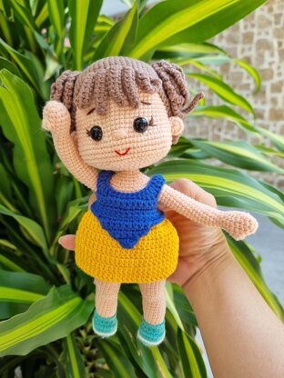 The pattern consists of 16 pages. DOLL SIZE is approximately 22 cm ( approx 8.66 inch)from top to bottom. It depend on the kind of yarn and hook size used. I used Gazzal baby cotton 50g/ 165m :60% cotton & 40% acrylic . I used the hook : Body - 1.25 mm and Dress - 2.5 mm