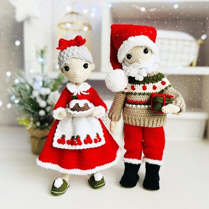 Amigurumi doll, crochet doll pattern, doll clothes crochet pattern, Santa Claus and Mrs. Claus