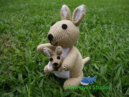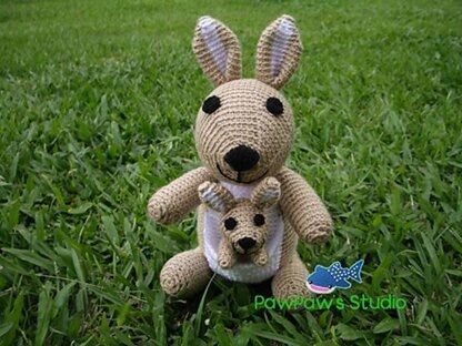 Mom kangaroo is about 28 cm /11” tall. Baby kangaroo is about 12 cm /4.7” tall.