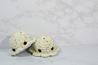 Measures: 5” from top to bottom of tentacle/tendrils, on average depending on how tight you crochet. 2.5” without tendrils