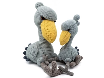 This pattern let's you make two different sized Shoebill storks depending on the yarn thickness and hook size you use.