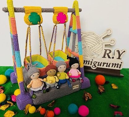 Hello our friends and amigurumi lovers around the world, Eid (Feast) brings us joy and happiness every year, a kind of joy nothing else could bring. Happy hearts meet and enjoy greeting each other and kids just play around with clouds of happiness above their heads. And what could be more joyful than a colorful swing by which they could feel flying with their dreams. Wishing that our new design would bring you the happiness we felt making it and swing away your worries. Happy Eid everyone. Such a beautiful swing will be an amazing gift for a little kid in different occasions special in Eid or used as a decorated item. This pattern is written and designed by Reham Youssef the owner of R.Y amigurumi and please note that it is for your personal used only and it is not allowed to sharing and reselling and reproduce in Internet or any way of published, you are able to sell the product only as you want.