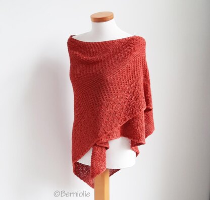 This is a symmetrical triangle top down knitted shawl pattern. Worked in a textured stitch.