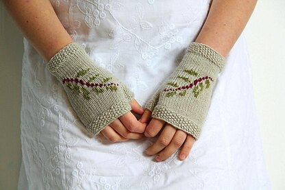 Amrei is a very old german woman's name which I totally love. I don't know why, but I have this picture in my mind of a woman knowing the forests, knowing every herb by name and knowing everything about curing diseases and brewing potions. Surely such a woman would need mitts to protect her hands while gathering herbs, and maybe they would have a small embroidery, showing whom they belong to. Nothing complicated, just a small motif...