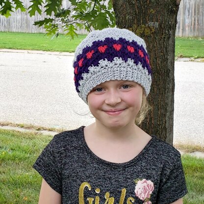 The top of the hat has been fitted (decreased) to follow the curve of the head and then closed at the top. There is not a lot of extra fabric up top so it can be worn as a short slouch hat too. If you would like a longer slouch you can simply increase the number of repeat rounds until you reach a desired hat height.