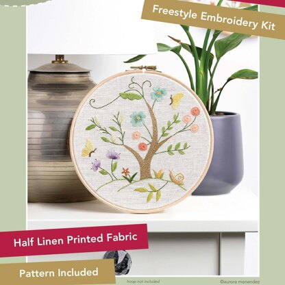 A beautiful folk style freestyle embroidery kit designed by Aurora Menendez. This kit contains all you need to stitch the design, including Anchor Stranded Cotton threads, a needle, and pre-printed linen blend fabric, as well as detailled charts and instructions. The hoop is not included. This Anchor Essentials kit is aimed at intermediate crafters and is perfect for any nature enthusiast. Anchor Stranded Cotton Threads, linen blend fabric - with pre-printed outline, needle, full chart & instructions