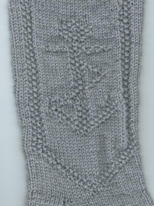 The anchor is based on those found in gansey patterns, especially those from Eriskay.