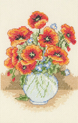 Anchor XS Starters - Poppy Vase Cross Stitch Kit - 15cm x 15cm