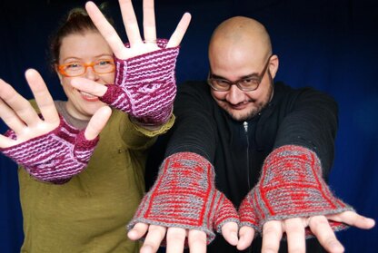Use twisted and slipped stitches to put eyes on both palms; hold your hand out to an evil-doer as symbolic protection, or put your hands up to your face to turn your mitts into an instant creepy costume.