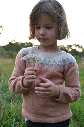 This classic sweater is worked top down with a seamless circular yoke and a pretty colourwork design that is perfect for colourwork beginners with easy to follow repeats and no long floats. The hem and sleeves are finished with a folded hem for a clean and professional finish. The sleeves are shaped with a gentle puff at the wrists for a feminine touch, the body is worked without shaping for a relaxed fit that pairs well with many silhouettes. The result is a sweater that is truly versatile, cosy and pretty.