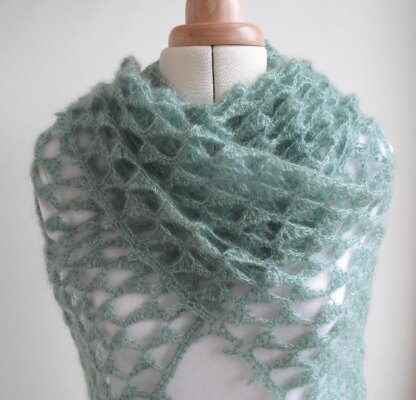 A warm triangular shawl based on a simple stitch pattern. The mohair laceweight yarn makes it light, so it’s great for holidays as it packs small and light but will keep the chill off in the evening. The shawl is worked from the bottom point upwards. The finished size is 170cm wide by 85cm deep when blocked. However, you can make it any size - just carry on adding rows until you get the size you want. I crochet quite loosely with mohair yarn, so although the pattern uses a 4mm hook you may find a 5mm hook better. Written in UK and US terms.