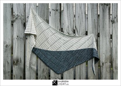 So named because of how the stitch patterns refract through the centre line at the colour change and exit at the opposite angle, this shawl explores simple textures and colour blocking, and produces a finished piece which looks much more complicated to make than it actually is.