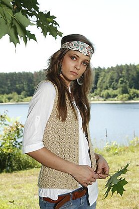 The pattern is a one row repeat & is charted. The vest starts at the bottom, & is worked in one piece until you get to the underarms. The vest is then divided into the two front pieces & the back piece, & then seamed at the shoulders.