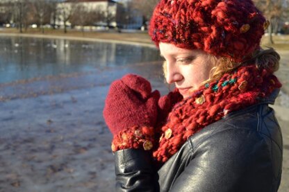 Notes The mittens are worked after picking up sts on the BO edge of the cuffs. Only a small amount of yarn is need for the cuffs. With 2 skeins of the cuff yarn, a hat and mittens can be