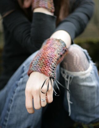 These are so easy and fast, you could whip up a whole batch as gifts in a week! The simple slipped rib pattern creates the appearance of a loose gauge on one side and a tighter gauge on the other, and a super squooshy amazing fabric (especially when done in Twist.) You can easily make them longer (cast on a larger odd number) or wider to fit just about anyone, and if you like, you can leave a thumb hole when you’re lacing them up for more of a fingerless glove.