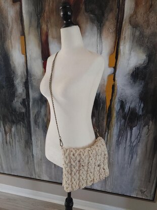 This fold over convertible crossbody handbag is just about perfect for…Anywhere! Knitted in a medium worsted weight yarn, this bag can be dressed up with a sparkle yarn or made more casual with a soft tweed! With the strap being clipped on to the D-Rings sewn onto the sides, the strap can be removed so it can easily be converted to a clutch. With its basic cable styling & its fold over design, it will become a favourite accessory while on the go!