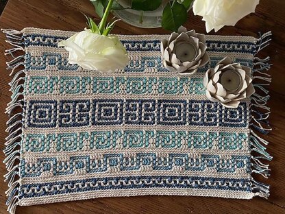 This design is interchangeable with the Artemis Placemat and the Kalimera Blanket. So you can get creative and form your own combination of designs. These designs were inspired by the Ancient Greek Keys.