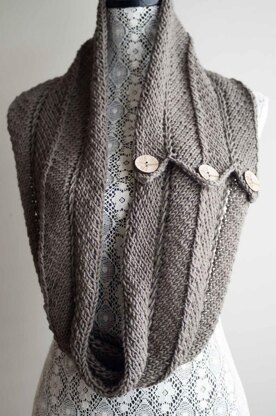 Apotheka is an infinity scarf that doesn’t need to be worked in the round. Knit flat, this piece is then sewn together. Alternately, you could easily leave this unsewn for a lovely scarf. Worked with super-soft HiKoo’s SimpliWorsted, this neck warmer has beautiful drape and is incredibly cozy. It also works up in a flash.