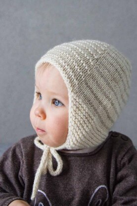 Materials:Worsted weight yarn (or Aran weight yarn that comfortably knits to the given gauge) Main color (MC) approx. 45 (65, 90, 110) yards / 40 (60, 80, 100) m Contrast color (CC) approx. 30 (40, 50, 60) yards / 25 (35, 45, 55) m Yardage needed depends on whether you make the brim and ties with MC or CC (difference is only some yards/meters)