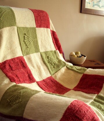 This is a pattern for a textured throw, originally designed for Knitting Magazine called Apple Orchard Blanket. It has three different textured squares; stocking stitch, a textured check pattern and a bobble tree motif. The yarn used has now been discontinued, so any yarn knitting to the tension can be used. (18 stitches x 22 rows over 10 cm stocking stitch) Alternatively a yarn knitting to a different tension can be used to come out at a different size. The throw is in Autumn colours cream, a soft green, soft red and lilac. Finished measurements are 130 x 180 cm. Size can be varied by making more or less squares.