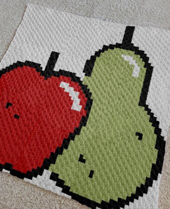 Apple & Pear Blanket Fruits Throw Decor Intarsia C2C Crochet Pattern