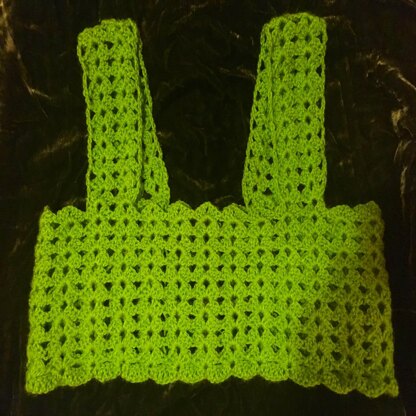A simple one colour lacy sleeveless bodice or crop top in two lengths and three sizes from 8 to 18 (UK).