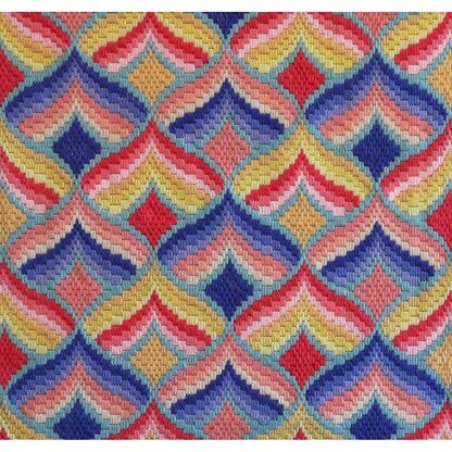 A full size (40cm x 40cm) piece which can be turned into a cushion (for which you would need extra fabric) or framed for a wall hanging, the Bargello design is proving extremely popular and versatile. The canvas is not printed, and this kit provides full instructions (and a video accessed by a QR code) to allow stitchers of all levels to enjoy and complete the tapestry. The Bargello stitch is suited to those who enjoy the mindful aspect of stitching due to the repetition of the pattern. Research shows how stitching provides mental health benefits; these kits are accessible to all. Kit includes:
