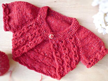 Welcome to the Arabella Shrug Knitting PATTERN. Seamless and knit top down, Arabella is a short sleeved lacy design which can be worn either casually or smart too. A fabulous extra layer for all seasons which can be knit to coordinate with your little one's outfits. Arabella is a colourful cardigan design, knit in a tweedy flecked double knitting yarn here - Sirdar's Haworth (but equally lovely in a solid colour) with an easy flower lace pattern on the fronts and sleeve edges and garter stitch around the neck. Arabella is knit with double knitting yarn, so fairly quick to make. The pattern is knit flat, with the sleeve trim being knit in the round. Although graded as an intermediate pattern, Arabella is suitable for an adventurous beginner too. As an independent designer, I also offer additional help via email.