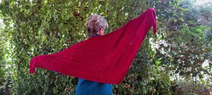 Arabesco es un chal triangular que nació como una variación de la Manta Arabesco. Está empezado por el centro y dividido en dos triángulos iguales unidos por uno de sus lados. Está bordeado por unas trenzas de tres puntos y adornado con unos relieves realizados con trenzas muy sencillas de punto derecho retorcido y unos bodoques. Acaba en un remate con i-cord. Aunque pueda parecer algo complicado, no lo es en absoluto y queda muy vistoso