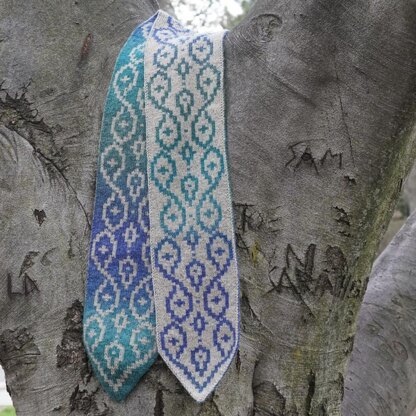 Arabiyya is the final pattern of a set of three double-knit scarves designed to take advantage of Rowan Felted Tweed’s new Colour line of gradient yarns, combined with one of their classic solids.