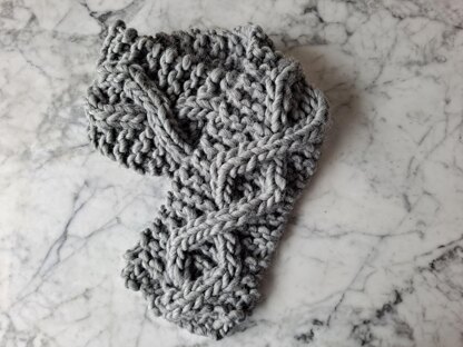 The Aran Afternoon Scarf will only take you one afternoon to knit – hence the name! It features a repeating cable motif worked over 10 rows, on a garter stitch background. The scarf is of a size you can wear tucked into a jacket or coat, but if you wish, you can knit a longer scarf with more cable repeats, or you can sew the ends together of a shorter scarf to create a cosy cowl.