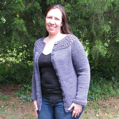Arctic Freeze is a classic cardigan sweater with a lovely lace yoke.