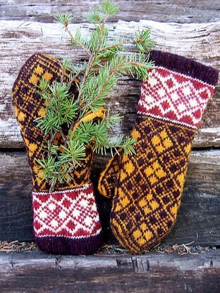 This symmetrical & geometrical pattern is suitable even for beginners in colorwork, as there is no long yarn floats. The pattern itself is quite bold and gender neutral. You can knit a pair for a large guy's hands if you use sport-weight yarn and larger needles.