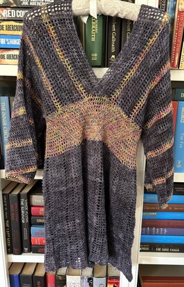 Easily adjustable sizing due to construction process. Bustline stitching will shape garment. I used Malabrigo Mora.