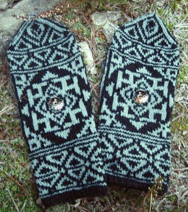 For J.R.R. Tolkien fans - another colorwork mittens! Each mitten is embellished by "Arkenstone", for which you can use a shiny button or bead approx. half inch in diameter. Or... you can leave it as is. The first pictures are by Mitt; thank you Marit! I hope to see more projects soon ;))).