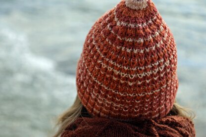 Walchensee is a beautiful lake in Bavaria where my husband and I spent one of our first vacations together. When I found a yarn named after the lake, I had to get it and find an especially beautiful stitch pattern for it. Around theWalchensee Hat features a cute stitch pattern that is very easy to work. You will know it by heart in no time and can always easily see where you left off, but there is enough going on for it not to be boring and keep you engaged. It works great with colorful fingering weight yarns that are so hard to find good patterns for if miles and miles of stockinette drive you crazy.