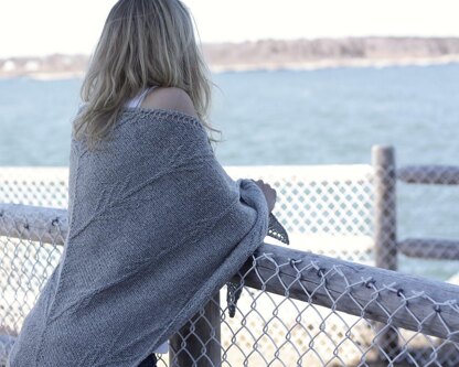 Reminiscent of the textured motifs found on traditional Guernsey sweaters the patterns on this shawl are simple and clean. A purl stitch arrow pattern adorns the background of simple stockinette.