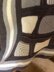 This blanket was designed for my new great-nephew, Arthur, who was born earlier this year. I wanted to use squares of different colours but I didn't want to end up having to sew them all together. I used two shades of grey and a cream, some squares were knitted in one colour and some in two to create a more interesting pattern when they were lined up.