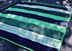This blanket uses three colors of yarn and features four different design panels, each with its own texture, that mirror out from the center of the blanket.