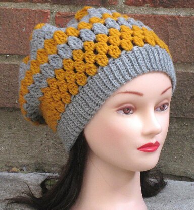 This pattern is for a snuggly, stripey slouchy hat featuring a knit-look band and a pretty cluster stitch pattern. This hat is soft, cozy and stylish, and would be a stunning addition to any wardrobe! The pattern comes with easy to follow step-by-step instructions and helpful, clear photos.