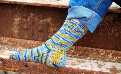 Yarn: Lorna’s Laces Cloudgate, 90% Superwash Merino/10% Nylon 120 yards/100g 2 skeins. Amount of yarn needed will depend on foot size. Men’s size 13 feet took approximately 200 yards; Women’s size 10 took 160.